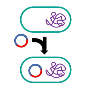 As early as the 1940s, scientists observed autonomous extrachromosomal DNA elements that were replicating inside certain bacteria. In 1952 Joshua Lederberg proposed the term “plasmid” to describe these extrachromosomal elements2. It wasn’t clear at the time what these plasmids were doing, but they were clearly able to replicate in the host and be inherited by daughter cells. Unlike bacterial chromosomes, which were very large (typically several million base pairs of DNA), plasmids could be quite small (some as small as just a few thousand base pairs), though we now know of the existence of plasmids that are on par with chromosomes in terms of size. At a minimum, a plasmid contains a special region of DNA that interacts with DNA replication proteins – a region commonly referred to as the “origin of replication”. Sometimes the plasmid carries the genes for its own replication proteins, while in other cases it relies on the native DNA replication machinery of the host. Additionally, plasmids usually carry genes that provide some functional benefit to their host, like genes that provide resistance to environmental stressors (such as antibiotics, heavy metals, or radiation), genes that endow the host with new metabolic capabilities (such as the ability to use new compounds as energy sources), genes that produce toxins that can kill other bacteria or predators in the local environment (thus reducing competition for the plasmid-carrying strains), or genes that allow the bacteria to colonize new environmental niches. Plasmids often also encode complex molecular machinery to facilitate their spread between hosts in the environment, ensuring their long-term propagation.
