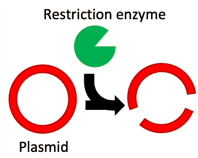 In the 1960s and 1970s, two extremely important enzymes were isolated and characterized. First, in 1967, an enzyme named DNA ligase was isolated5. This enzyme, which plays a role in DNA replication and repair processes inside the cell, can take two separate fragments of DNA and chemically join them together into a single fragment. Next, in 1970 Hamilton Smith published his work on isolating and purifying a restriction endonuclease enzyme from the bacterial strain Haemophilus influenzae6–7. Restriction enzymes are so called because they were observed to “restrict” foreign DNA from functioning inside a host. Smith was able to demonstrate that these enzymes worked by recognizing a specific short sequence of DNA. If this specific short sequence of DNA was present in a longer stretch of double-stranded DNA, the restriction enzyme would bind to it, and acting like a pair of molecular scissors, cut through both strands of the DNA. These enzymes function as a kind of primitive immune system, cutting up the DNA of invading viruses and preventing infection. Following Smith’s work, a plethora of restriction enzymes were isolated from a myriad of bacterial species, each enzyme recognizing and cutting at a unique “restriction site” that is specific for that enzyme. For example, the restriction enzyme known as “EcoRI” recognizes the DNA sequence “GAATTC”.
